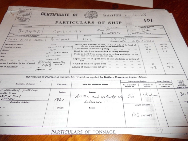 Name/TitleCertificate of Registry Chudleigh of Lowestoft